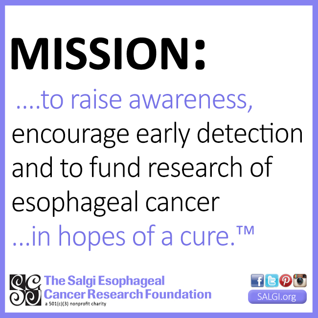 The Salgi Esophageal Cancer Research Foundation is working to raise awareness, encourage early detection and to fund research of esophageal cancer…in hopes of a CURE!™